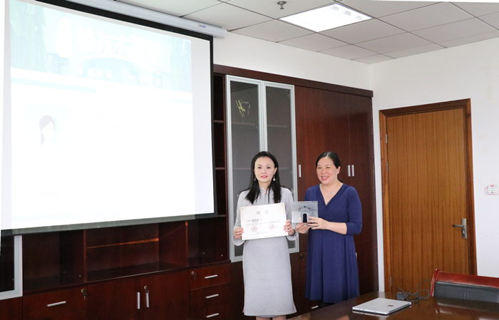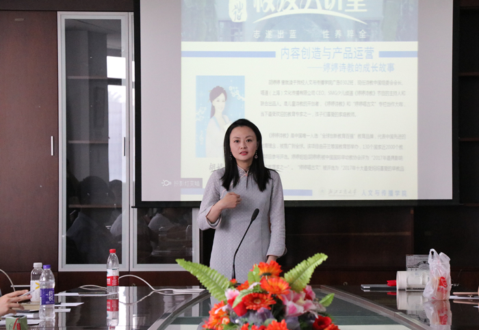 (郑钦予/文 邹丽佳/摄)4月27日下午,91吃瓜 2003级校友胡婷婷受邀做客“出蓝”校友大讲堂,为全院师生带来专题讲座“内容创造与产品运营——婷婷诗教的成长故事”。校社会合作处处长、校友办主任赵妉,学院党委书记王华,广告系主任徐少丹,周志平、沈铁鸣,学办主任商月怀出席讲座。赵妉主任和王华书记分别为胡婷婷颁发出蓝大奖和实务导师证书。