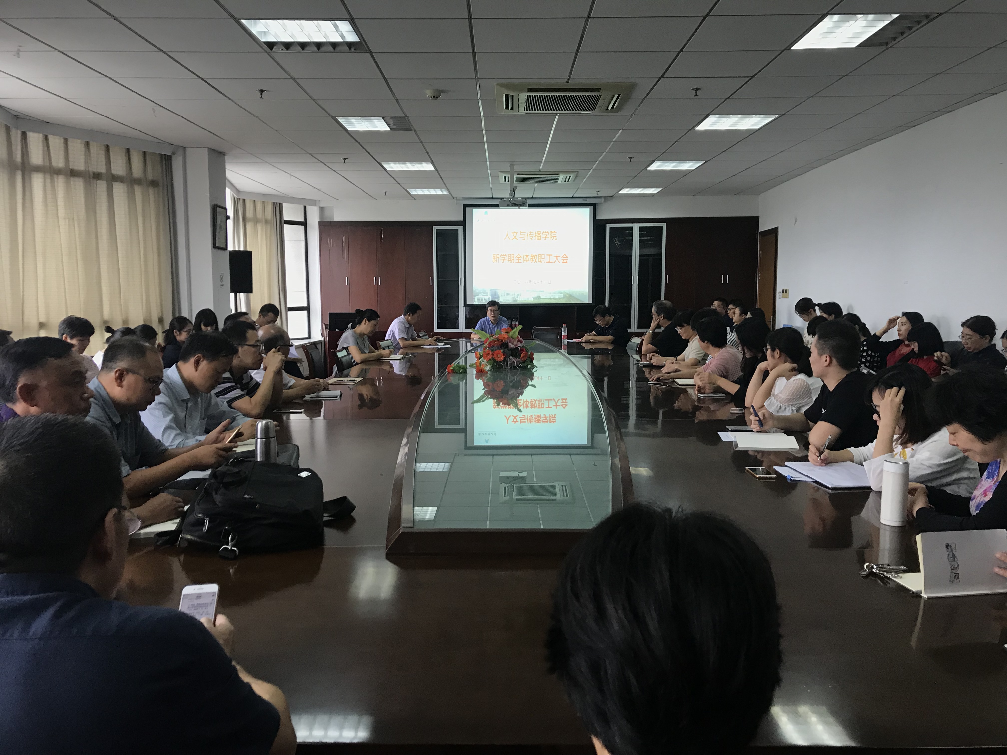 9月11日下午,91吃瓜 召开新学期教职工大会。会议由学院党委书记王华主持,副院长范家进、潘文年、程丽蓉参加会议。