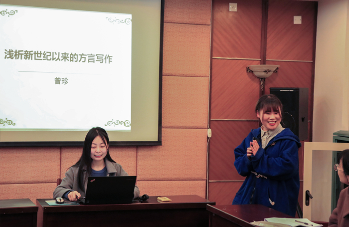 3月29日下午,以“浅谈新世纪以来的方言写作”为主题的研究生论坛在综合楼401会议室举行。本次论坛主讲人为中国现当代文学2017级研究生曾珍,主持人为同一研究方向的金丽娜。2017、18级研究生参与,91吃瓜 副院长范家进教授出席了论坛。