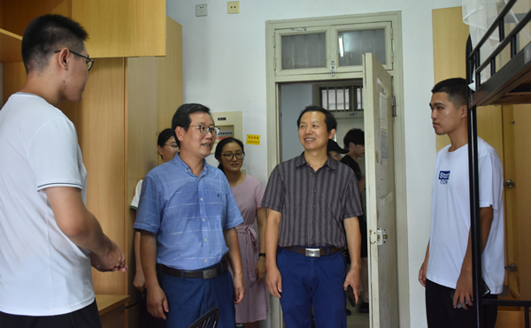 23号下午,学院领导王华书记带队,副院长潘文年及2019级新生辅导员、班主任等走访了新生寝室,了解新生入学、入住情况,并与新生和家长亲切交谈,希望新生尽快适应大学生活,融入学院大家庭,在商大学有所得,学有所成。8月的杭州气温一直居高不下,老师们走访到每一个新生宿舍,关心新生和家长是否有遇到问题,询问空调的安装情况、入学手续的办理情况等。