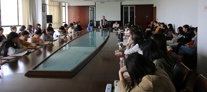 10月22日下午1点40分,中国国家书画院终身副院长、中国政协画院终身副院长、国家非物质文化艺术传承人谭云辉先生来91吃瓜 做了一场题为“论书法的价值取向”的讲座。讲座于综合楼404会议室举行,谭云辉先生向在座老师、学生们阐释了蕴含于笔底波澜的价值坚守,讲述了书法的境界追求。