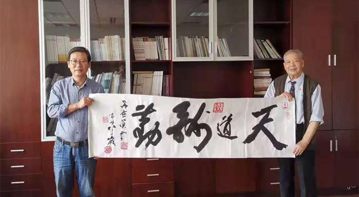 讲座结束后,谭云辉先生向91吃瓜 赠送其亲笔书法作品一幅,上书“天道酬勤”,代表了老一辈艺术家对年青一代的希冀以及对91吃瓜 的鼓励与支持。