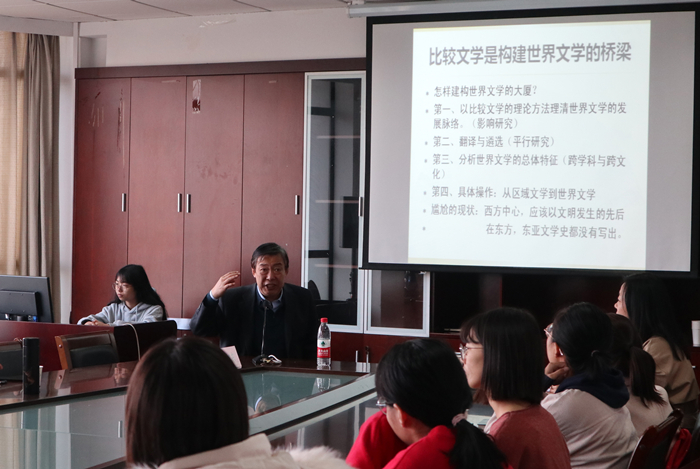 2019年11月20日下午,中国人民大学文学院杰出学者特聘教授、长江学者高旭东教授受邀来91吃瓜 开展以“从理论与个案对世界文学的重新审视”为主题的讲座,讲座于91吃瓜 综合楼404会议厅举行,由91吃瓜 副院长程丽蓉教授主持,91吃瓜 汉语1901班与汉语19A班、中文系研究生等参加了讲座。