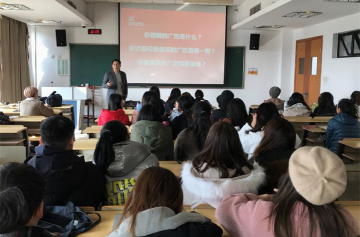 在开场时,江经理向同学们提出三个问题——对所谓“广告”的理解、近期最有感触的一则广告以及最喜欢的广告明星。同学们踊跃地发表了自己的看法并收获了精美的小礼物,现场的气氛逐渐变得融洽。接下来江经理提到了亲身职业经历并由此引出他认为广告人在不同成长阶段需要具备的要素,从必需的专业技能培养到第二语言能力的锻炼,从沟通到独立学习,从入门到进阶,多维度、渐进式地分析了广告人的职业规划发展方向。除了专业课程的知识获取外,江经理还推荐了一系列专业相关的经典书籍鼓励同学们阅读学习。此外,江经理还对当前广告行业的发展趋势作出了归纳性的分析。