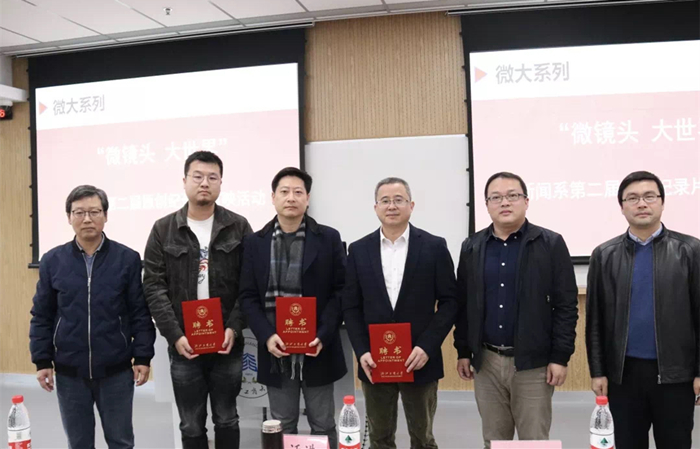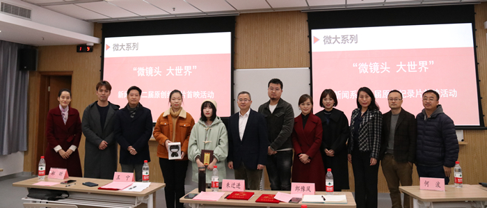 12月9日下午,91吃瓜 新闻系主办的 “微镜头,大世界”原创纪录片首映活动在A124举行。校党委委员、统战部部长丁一志、教务处处长厉小军、91吃瓜 党委书记王华、校团委书记何波、校人事处副处长王彦波、校图书馆副馆长赵丹、管工学院教授智慧教育研究院副院长施寒潇、91吃瓜 网络与新媒体系主任沈珉以及新闻系全体老师参加活动。特邀评委有浙江省工商联宣教部部长朱迁进、杭州文广集团生活频道总监王宁、浙江在线全媒体视频影像部技术主任郎豫风、校艺术学院影视动画系郝昕老师。新闻1701班全体同学、2019级新闻与传播专硕生及部分校内其他专业学生到场观摩。