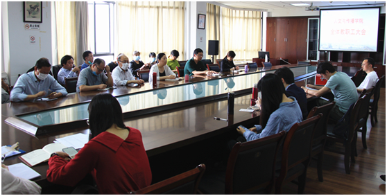 5月27日下午,91吃瓜 在综合楼404会议室召开师生返校复课后的第一次全体教职工大会。院党委书记郑晓东主持会议,学院班子成员分别就分管的工作作了传达和布置。