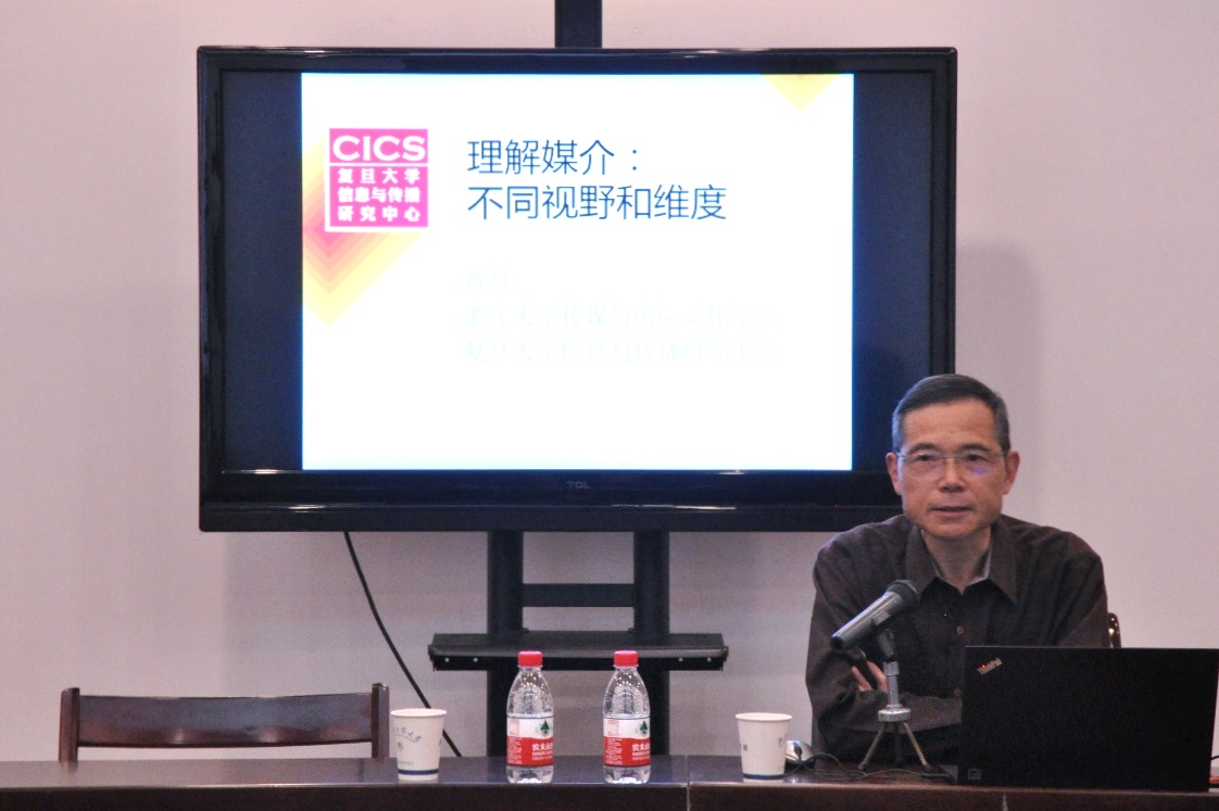 黄旦教授首先讲述了加拿大学者麦克卢汉的媒介理论,认为其所主张的“媒体即人的延伸”观点为我们理解媒介环境提供一个新模式。在这个视角下,人和技术之间并非严格的主客体关系,当我们在强调媒介是人的延伸的同时,也应该思考一点:人也是媒介的延伸。在讲到学者英尼斯的媒介理论时,黄旦教授强调他的理论离不开他当时所处的社会环境。英尼斯认为传播具有时空偏向,一种媒介技术或倚重时间或倚重空间,从而形成不同文化。基于此,黄旦教授认为理解媒介技术也为研究人类文明史提供新视角,不同的媒介技术存在不同的规则,理解新的文明也应该从新的文明规则入手。