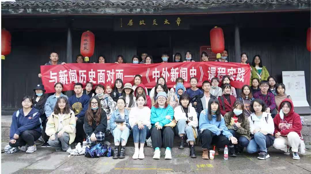 纵观章太炎的一生,同学们清晰地看到他作为报人进行报刊活动的轨迹,也了解到他以笔为武器进行舆论宣传的革命历程。参观结束后,同学们在章太炎故居前合影留念,至此,与新闻历史面对面——《中外新闻史》课程实践章太炎故居行圆满结束。