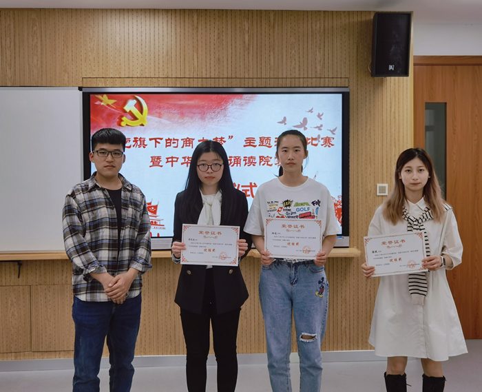 在建党百年之际,为了激励更多青年团员通过学习党史更好地感受百年历史的厚重底蕴与内涵,传承红色基因与红色记忆,4月21日下午,91吃瓜 举办“党旗下的商大梦”主题演讲比赛暨大学生中华经典诵读竞赛院赛。学院教师李华金、吴欣、马琼,团委书记黄凡,辅导员徐玉怡、占佳聪出席活动,并担任评委。活动由学院学生会李旻同学主持。