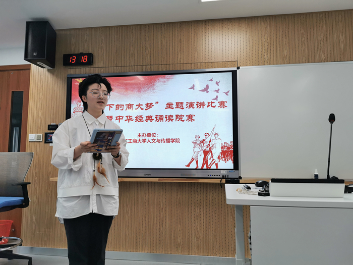 本次比赛面对全校学生自主报名,在经过线上选拔后,共有十名选手进入决赛。决赛分为两个环节,分别为备稿演讲、诵读经典篇目。十名选手轮流上场,先进行5分钟左右的主题演讲,而后再选择经典篇目进行现场诵读。比赛中,同学们慷慨激昂,在表达对红色精神和红色记忆进行传承的同时,也抒发了对学校的热爱和祝福之情。