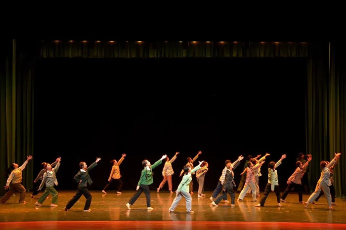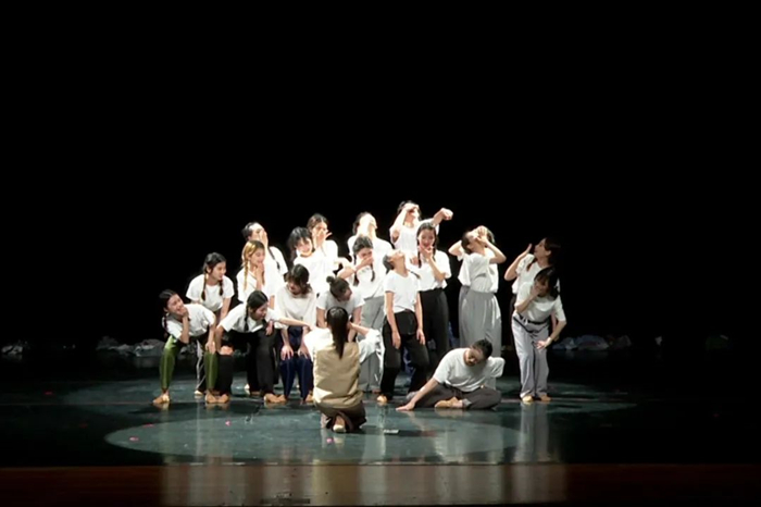 在上台前,后台正井然有序地进行着准备工作,成员们有的互相整理对方的辫子,有的低声谈笑。精致的妆容点缀了大家自信的脸庞,笑容也不甘落后,在年轻人的脸上依次绽放。负责人按照次序仔细检查了各位舞者的妆发与服饰,尽可能减少失误的可能性,为大家呈现完美的舞台。在一切都准备就绪后,领队放了遍音乐,让所有舞者在各自的位置上再简略地过了遍舞蹈,到最后时刻仍磨练着作品,努力提高作品的完成度。