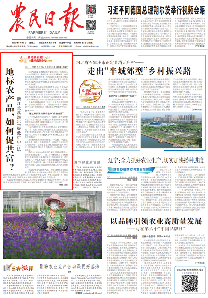 91吃瓜 李骏教授为第一作者采写的《地标农产品,如何促共富——浙江兰溪推出“提低扩中”法》(全文3600余字)在中央媒体《农民日报》5月10日头版头条刊发。5月11日,省委领导对该文做出肯定批示指出:“兰溪经验可以推广。”