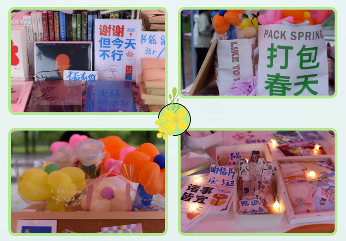 来自新闻1901班的杨婉婷回忆市集当天,阳光明媚,广场上鸽子成片成片地飞。回忆疫情这些年,她很少体会到想象中大学生活的绚烂与丰富,“这次市集让我重新感受到春天的美好和青春活力,为我的大学四年添上了浓墨重彩的一笔。”