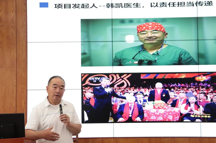 讲座伊始,韩医生以视频《“母亲微笑”三十年患者的故事》为切入点,向同学们阐述了他的慈善经历:从留学期间,以医疗志愿者的身份参与一项为面部残缺患者免费手术的公益活动,到上个世纪90 年代将“国际微笑行动组织”引进国内,从开始的公益小团队,到最后发展成拥有数以千计的医疗志愿者和数以万计的非医疗志愿者的慈善组织,韩医生将自己最美好的时光都奉献给了医学事业。