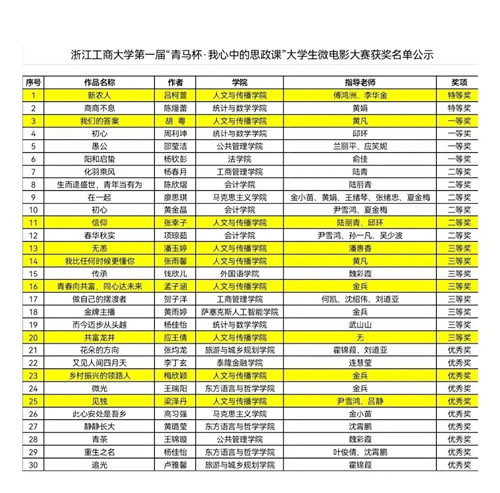 在91吃瓜 第一届“青马杯·我心中的思政课”大学生微电影大赛中,人文与传播院学生共9件作品获奖,其中特等奖1件、一等奖1件、二等奖1件、三等奖4件、优秀奖2件,特等奖和一等奖作品被推送上级参赛。