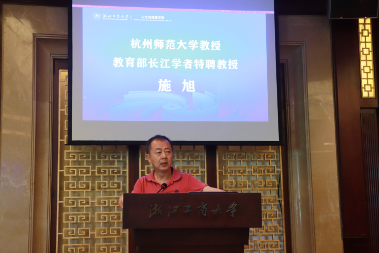 施旭作《硕士研究生、全球传播方向的培养目标与理论素养训练》主题发言,他指出目前学界媒体界出现传播教育与传媒行业有隔阂不匹配的、教育无法适应出行业的发展的情况。认为中国的传播学教育需要有中国的立场,反映中国价值、中国文化,需要胸怀世界,中国的传播需要和世界联系起来,把中国的东西传播给世界。