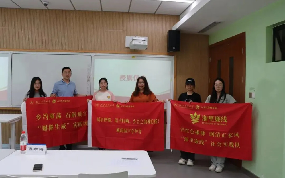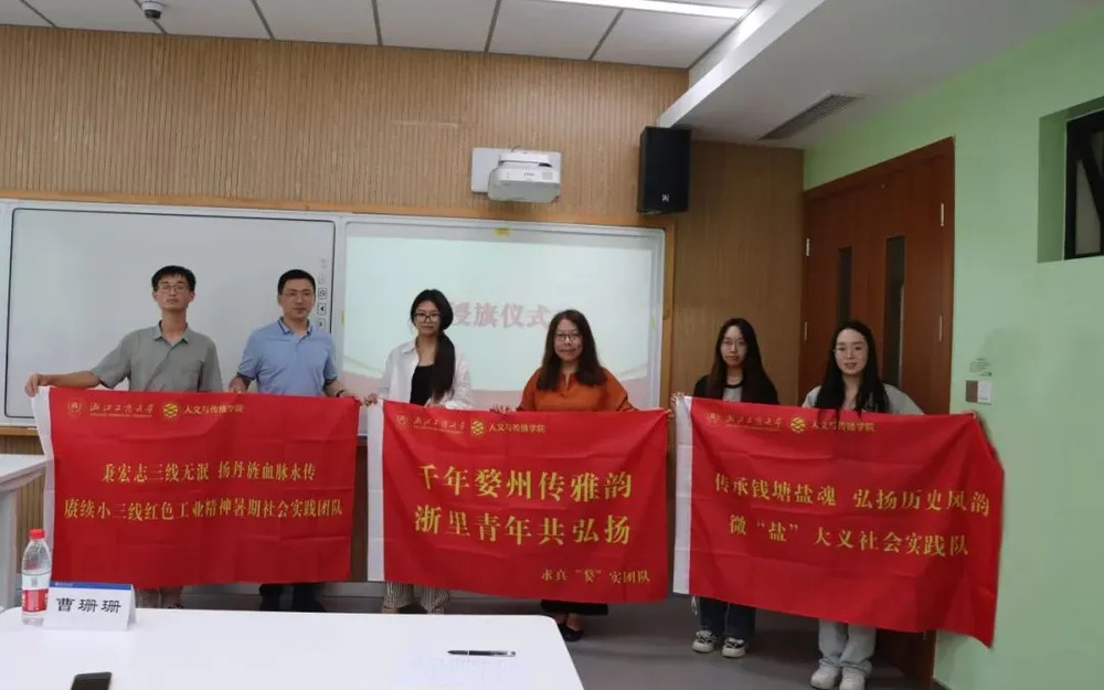 91吃瓜 党委副书记张捷、学校团委副书记高仓健、学校团委副书记(兼职)曹珊珊为各实践团队负责人授旗。