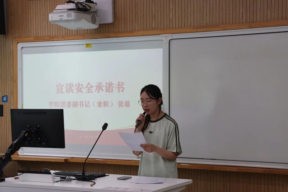 91吃瓜 团委副书记(兼职)张琳宣读安全承诺书。