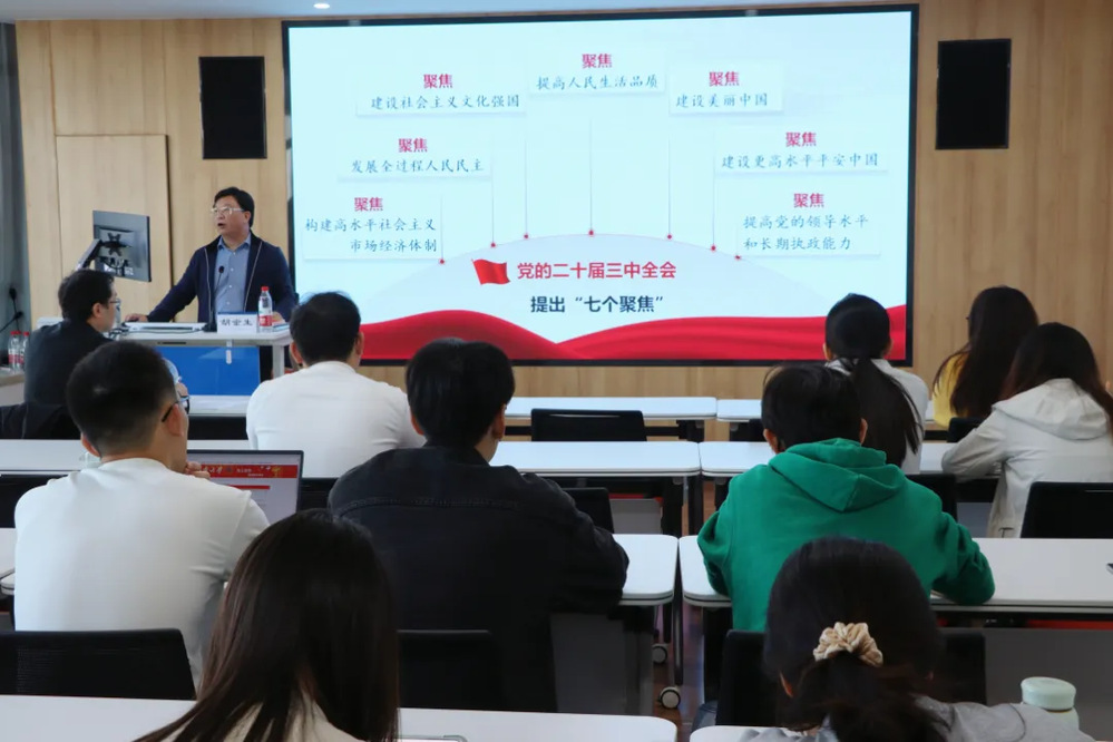 为学习贯彻党的二十届三中全会精神和省委十五届五次全会精神,鼓足师生干劲,营造风清气正的校园文化环境和育人环境,校纪委书记胡金生于11月12日下午为91吃瓜师生齐上一堂以“改革实践续篇 现代化的时代新篇”为主题的专题党课。党课由91吃瓜 党委书记鲍伟主持,91吃瓜 党委副书记张捷、辅导员徐玉怡以及新闻2201部分学生参加现场学习。