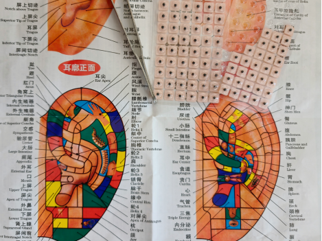 工作人员为教职工贴上王不留行籽耳贴,并示范日常按压技巧:“失眠按神门穴,胃胀按胃区……”,帮助缓解疲劳、改善睡眠,同时传授日常自我保健方法。许多老师首次体验这一传统疗法,对其“见效快、无创伤”的特点赞不绝口。